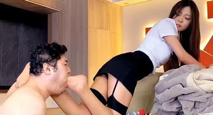 情侣奴被高贵辣妹当清理鞋底汗脚工具使用