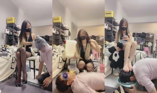 萱萱、欣欣双主性感露肩装折磨小奴玩乐